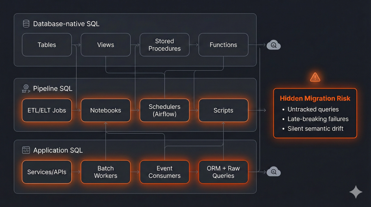 Cloud migrations are rarely blocked by “hard SQL.” They’re blocked by untracked logic—the SQL you didn’t know you owned.