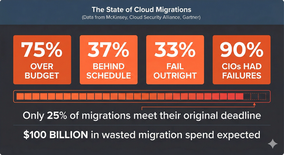 Before diving into technical reasons, let's look at outcomes. The research from major analyst firms and industry consortiums is sobering.