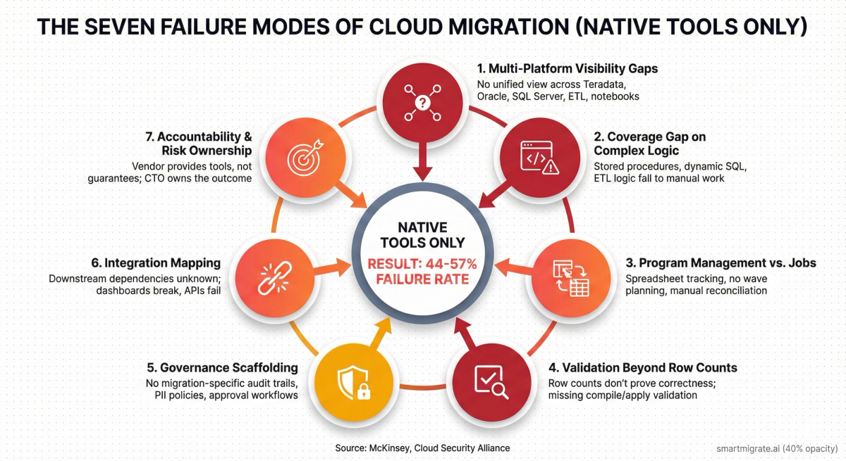 The Rule: If a failed migration would require you to explain to your board why you're asking for another $1M and six months, you need SmartMigrate—not native tools.
